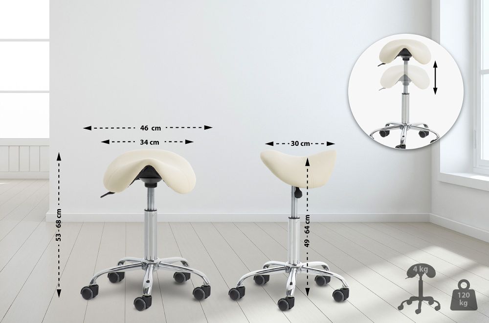 Durch das geringe Gewicht von nur 4 kg pro Hocker lassen sich die Modelle bequem umstellen und vielseitig einsetzen – perfekt für den professionellen Praxisalltag.