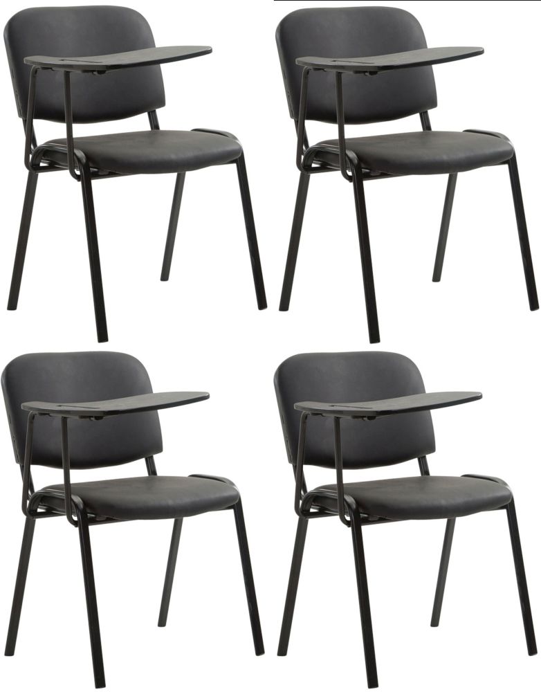 Dieses 4er Set Konferenzstühle Ken ist ideal für Besprechungsräume, Schulungen oder Seminare. Jeder Stuhl verfügt über eine bequeme Polsterung und eine praktische Klapptisch-Ablage auf der rechten Seite – perfekt für Notizen, Laptops oder Tablets. Die nicht stapelbaren Stühle stehen stabil auf einem modernen 4-Fuß-Metallgestell und lassen sich vielseitig kombinieren. Das pflegeleichte Kunstleder verleiht dem Set eine professionelle Ausstrahlung und ist besonders langlebig im Alltagseinsatz.