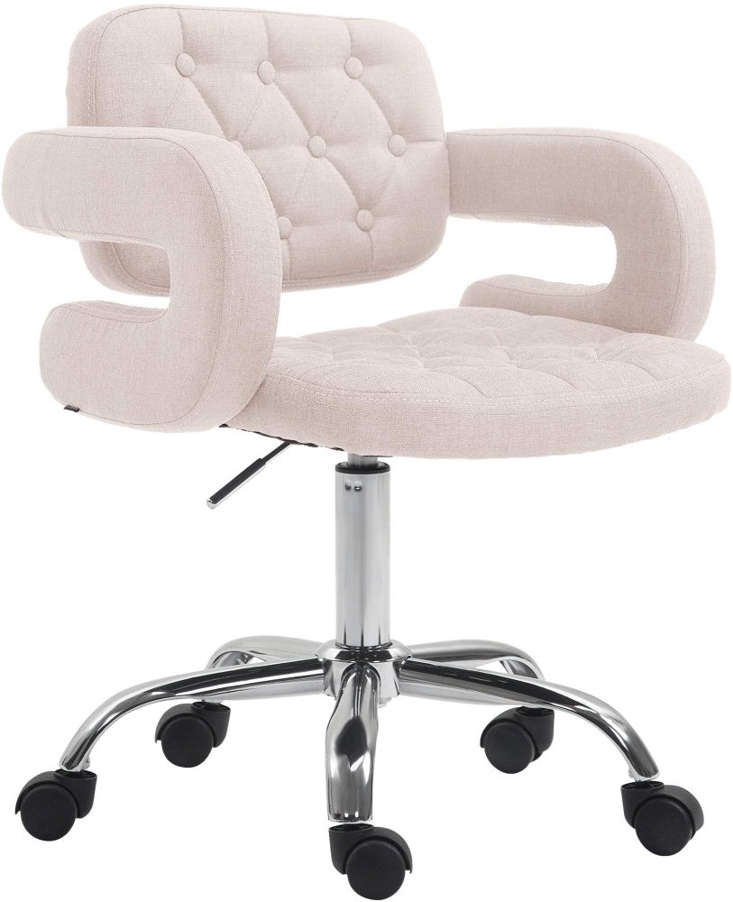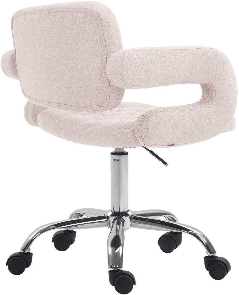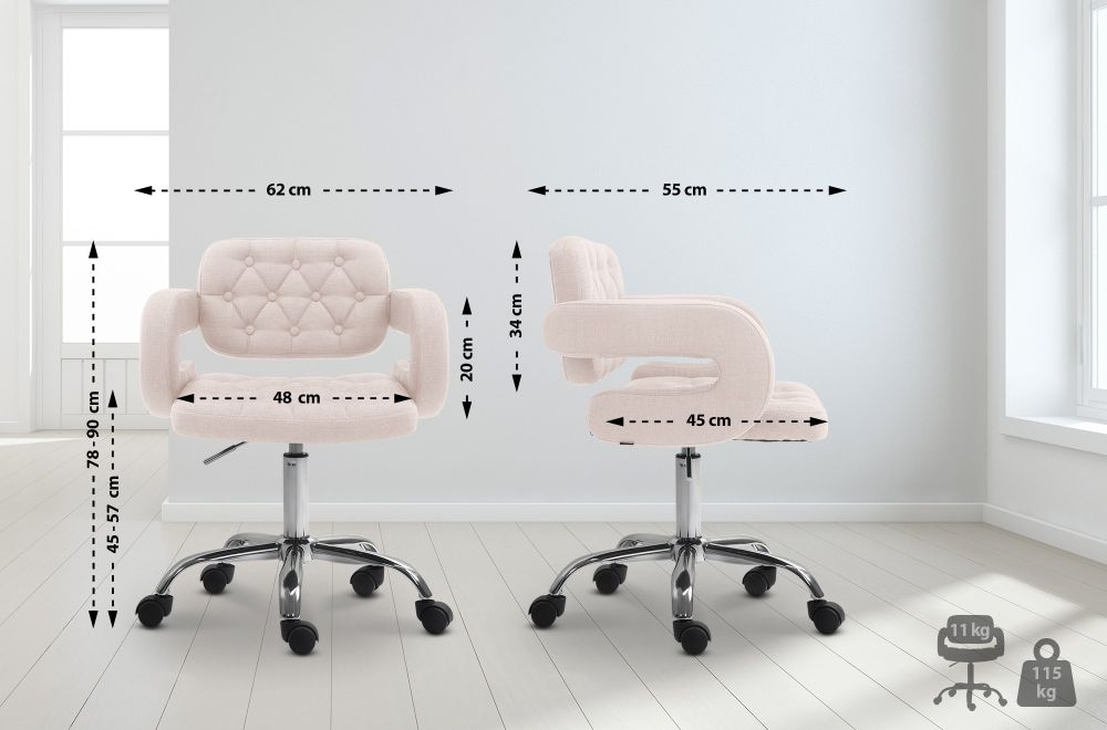 Der Arbeitshocker Dublin kombiniert modernes Design mit funktionalem Komfort – ideal für kreative Arbeitsplätze, Ateliers oder das Home-Office. Der gesteppte Stoffbezug verleiht dem Hocker eine stilvolle Note, während die Polsterung an Sitzfläche, Rücken und Armlehnen für ein angenehmes Sitzgefühl sorgt. Dank der stufenlosen Höhenverstellung von 45 bis 57 cm und der 360°-Drehfunktion lässt sich der Hocker individuell an unterschiedliche Tischhöhen und Arbeitsanforderungen anpassen. Die geschwungenen Armlehnen und die ergonomisch geformte Rückenlehne stützen gezielt den unteren Rücken. Das stabile Metallgestell in Chromoptik mit fünf Leichtlaufrollen sorgt für Mobilität und einen sicheren Stand – sowohl auf Teppich- als auch auf Hartböden.