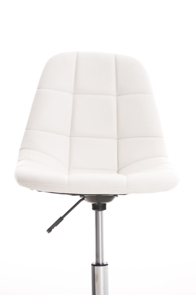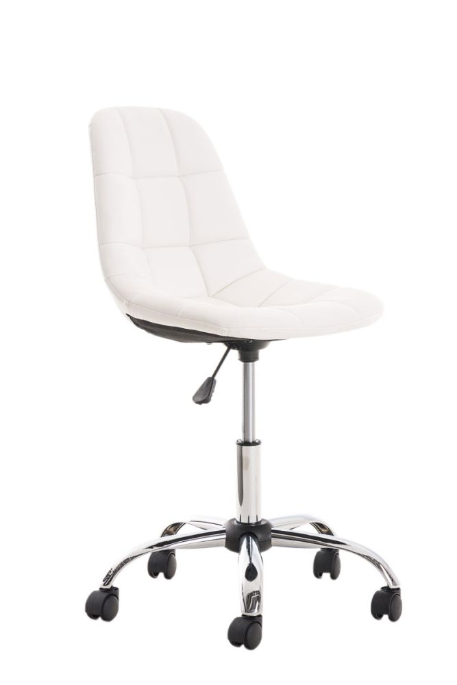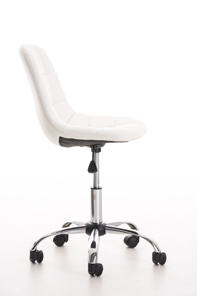 Die Sitzhöhe lässt sich stufenlos an die jeweilige Körpergröße anpassen, wodurch ergonomisches Sitzen gefördert wird. Der Stuhl ist drehbar und bietet dank des stabilen Metallgestells in Chromoptik und der fünf leichtgängigen Rollen volle Bewegungsfreiheit auf Hart- wie Teppichböden. Die kompakte Form eignet sich ideal für kleinere Arbeitsplätze oder moderne Raumkonzepte.