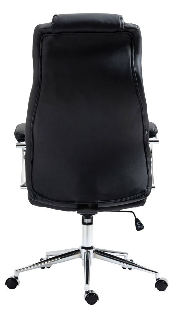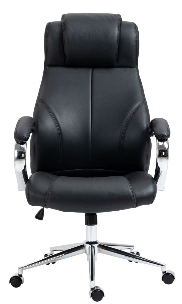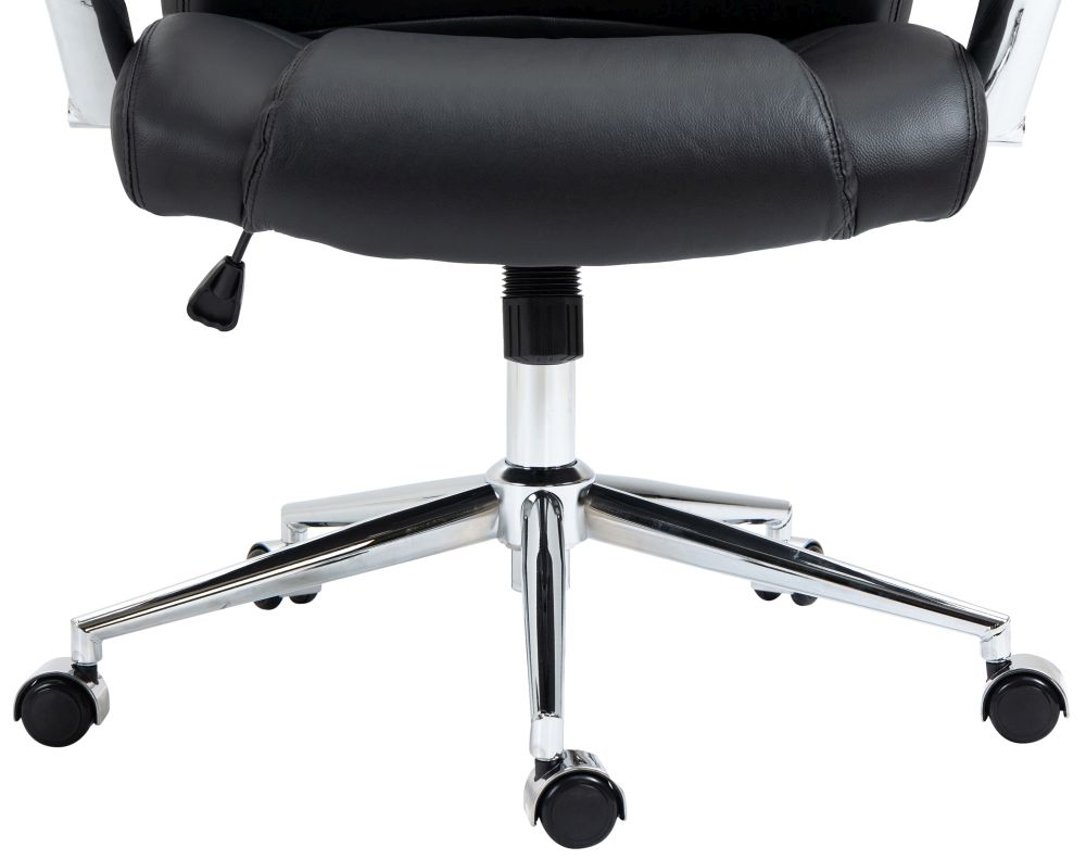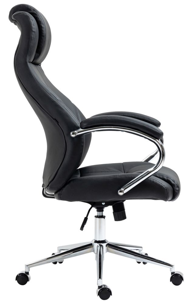 Der Bürostuhl Salford bietet höchsten Sitzkomfort kombiniert mit einem zeitlosen, professionellen Design. Die großzügige Polsterung an Sitzfläche, Rückenlehne und Armlehnen sorgt für ein angenehmes Sitzgefühl – auch über längere Zeiträume hinweg. Die ergonomisch geformte Rückenlehne in S-Form mit integrierter Kopfstütze fördert eine gesunde Haltung. Die sogenannte Waterfall-Sitzkante entlastet die Oberschenkel und verbessert die Durchblutung. Der hochwertige Bezug besteht an den Kontaktflächen aus langlebigem Echtleder, während seitliche Bereiche mit pflegeleichtem Kunstleder überzogen sind. Das stabile Metallgestell in Chromoptik gewährleistet zuverlässige Standfestigkeit. Die Sitzhöhe ist stufenlos verstellbar, und die Spannung des Wippmechanismus kann individuell angepasst werden. Fünf leichtgängige Rollen ermöglichen volle Beweglichkeit auf Teppich- und Hartböden.