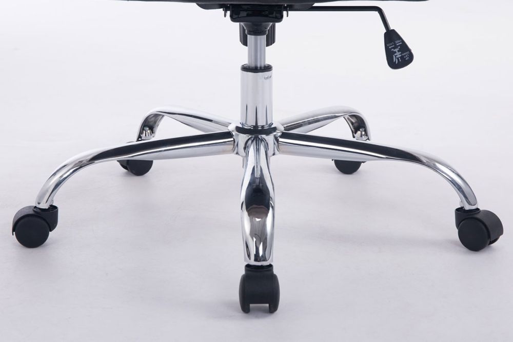 Die Sitzhöhe lässt sich stufenlos verstellen, wodurch eine ergonomische Sitzposition jederzeit gewährleistet ist. Zusätzlich unterstützt der integrierte Wippmechanismus dynamisches Sitzen und beugt Ermüdung vor. Die extra breite Sitzfläche, hohe Rückenlehne und gepolsterten Armlehnen bieten Komfort auf ganzer Linie. Das Metallgestell in Chromoptik und fünf Leichtlaufrollen sorgen für Mobilität und sicheren Stand – auf Hart- oder Teppichboden.