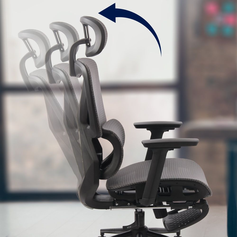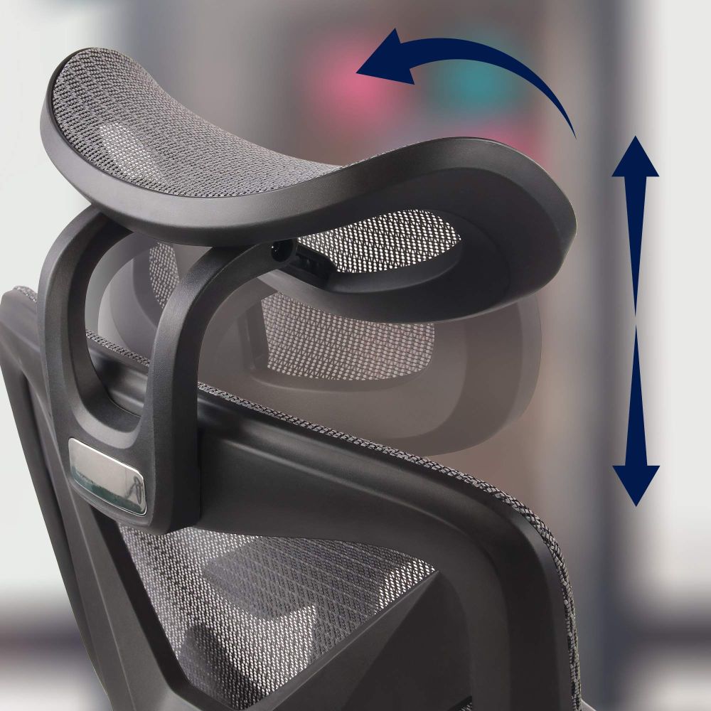 Dank der höhenverstellbaren Kopfstütze werden Nacken und Schultern gezielt entlastet – ideal bei langen Arbeitstagen. Die atmungsaktive Sitzfläche aus Mesh-Material verhindert Wärmestau und sorgt für ein angenehmes Sitzgefühl. Durch die höhenverstellbare Lendenstütze wird der untere Rücken optimal unterstützt.