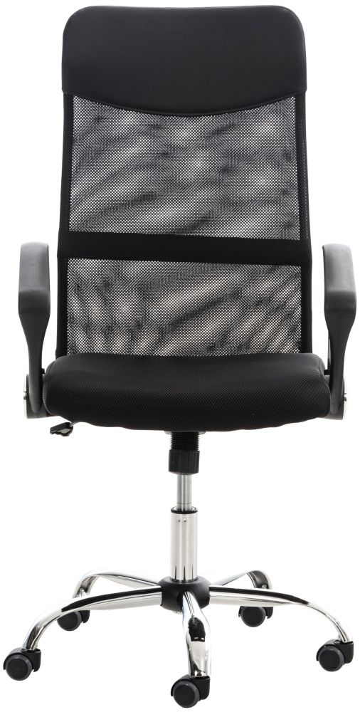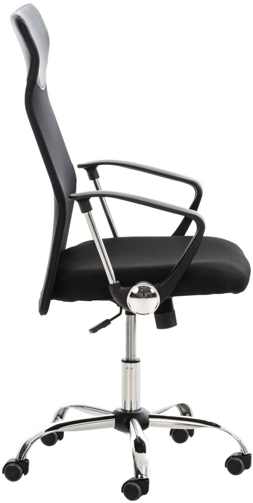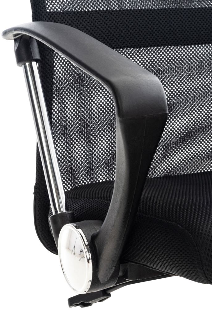 Die atmungsaktive Netzbespannung im Rückenbereich sorgt auch an warmen Tagen für ein angenehmes Sitzklima. Im Kopfbereich ist die Rückenlehne mit Kunstleder überzogen, was dem Design eine hochwertige Note verleiht. Die integrierte Wippmechanik fördert dynamisches Sitzen und kann über einen Drehregler individuell eingestellt werden.