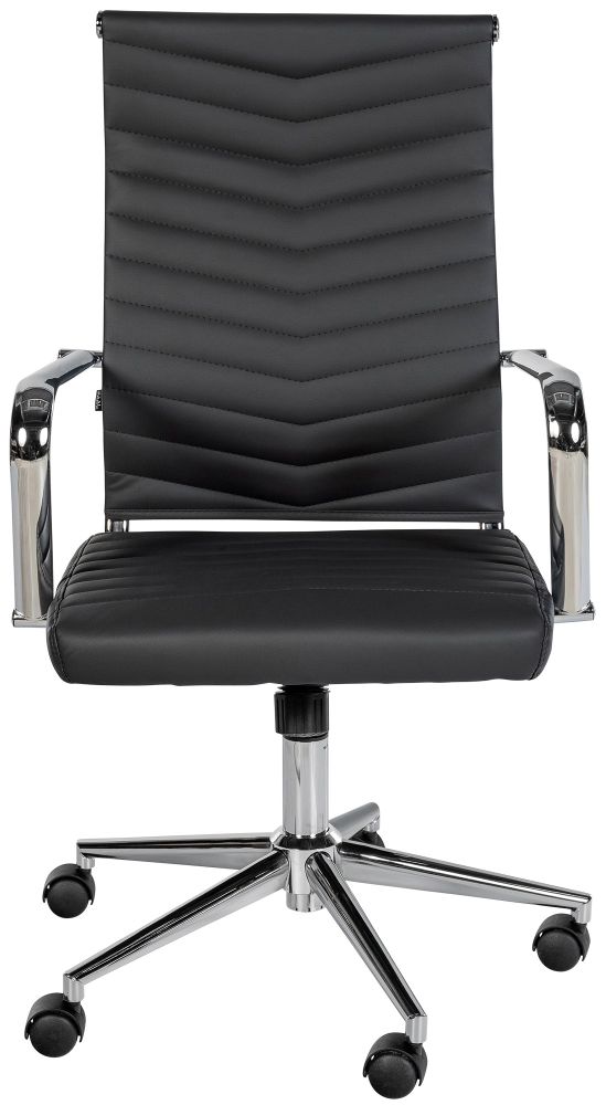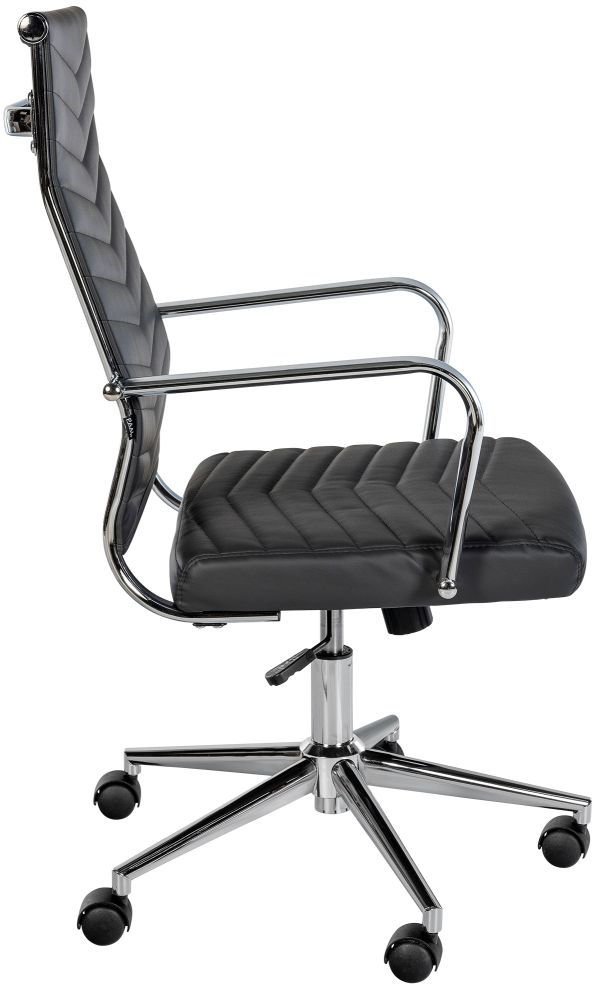 Das stabile Metallgestell in Chrom-Optik sorgt in Kombination mit fünf leichtgängigen Rollen für einen sicheren Stand und eine hohe Bewegungsfreiheit. Mit seiner schlanken Silhouette, Ziernähten und hochwertigen Materialien passt der Canby optimal in moderne Arbeitsumgebungen.