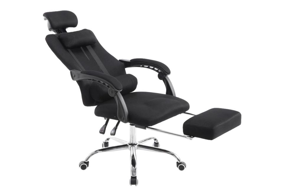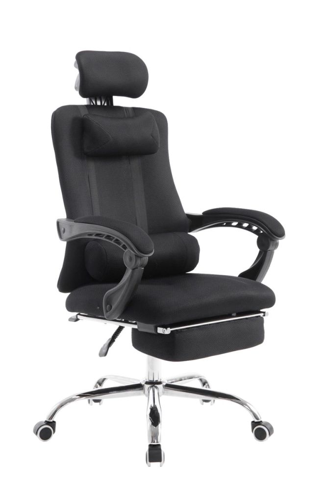 Die gut gepolsterte Sitzfläche sowie der atmungsaktive Textilbezug in Netzoptik bieten ein angenehmes Sitzklima und unterstützen eine gesunde Körperhaltung. Das stabile Metallgestell in Chromoptik garantiert festen Stand, während fünf leichtgängige Rollen für volle Mobilität auf Hart- und Teppichböden sorgen.