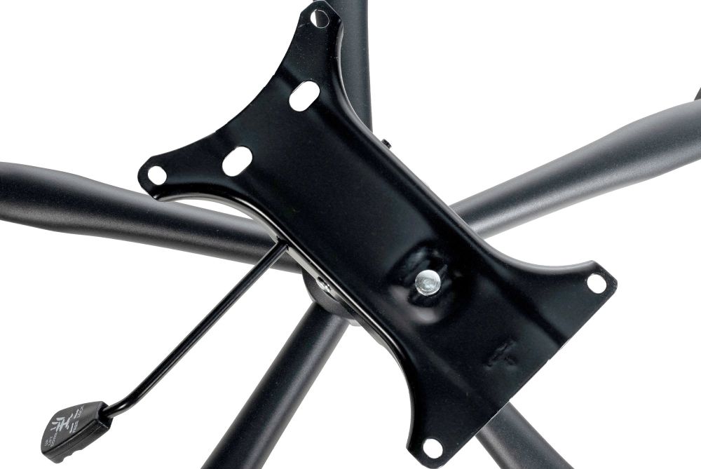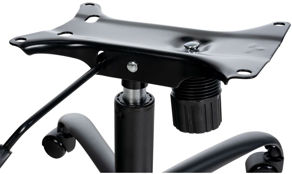 Das stabile Metallgestell ist mit fünf leichtlaufenden Rollen ausgestattet und ermöglicht eine stufenlose Höhenverstellung. Zusätzlich verfügt es über eine integrierte Wippfunktion für mehr Sitzdynamik und Komfort. Die Aufnahmefläche ist für viele gängige Sitztypen geeignet – bitte prüfen Sie die Lochabstände und Maße vor dem Kauf.