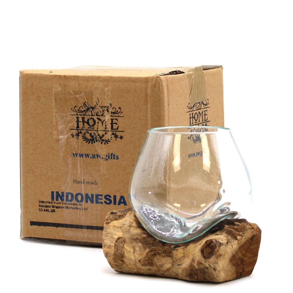 Geschenkidee | handgefertigte Glasschale auf Holz als Deko-Unikat von Bali