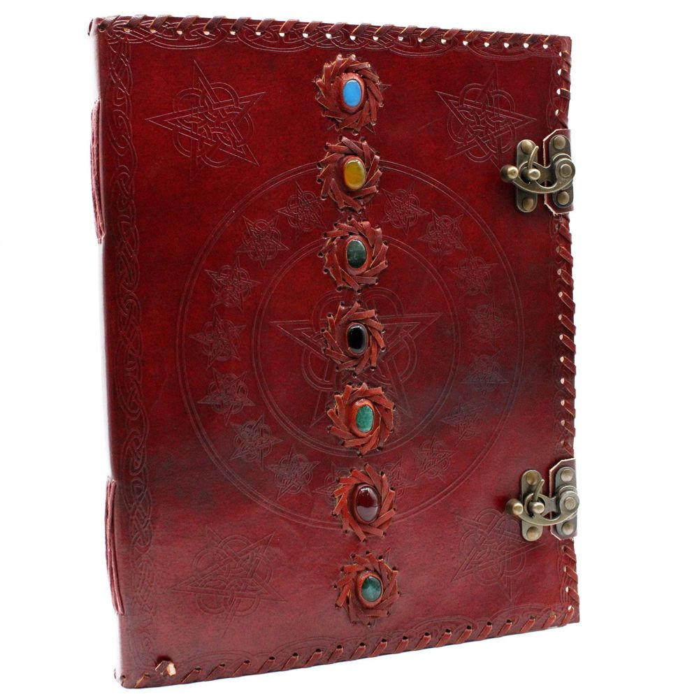 Dieses große 7 Chakra Notizbuch ist ein hochwertiges Lederbuch, das in aufwendiger Handarbeit gefertigt wird. Mit seinem eindrucksvollen Format von ca. 10 x 13 Zoll (etwa 25 x 33 cm) und 200 Seiten bietet es viel Platz für Gedanken, Skizzen und Aufzeichnungen aller Art.