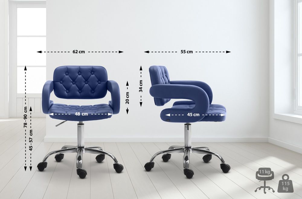 Der Arbeitshocker Dublin überzeugt durch modernes Design und praktische Funktionalität – perfekt für Arbeitsbereiche mit hohem Bewegungsbedarf oder als stilvolle Ergänzung im Büro. Der gesteppte Bezug aus hochwertigem Kunstleder sorgt für eine edle Optik und ist gleichzeitig pflegeleicht und strapazierfähig. Die komfortable Polsterung von Sitz, Arm- und Rückenlehne bietet ergonomische Unterstützung, insbesondere im unteren Rückenbereich. Die stufenlose Höhenverstellung zwischen 45 und 57 cm ermöglicht eine flexible Anpassung an verschiedene Körpergrößen und Arbeitstische. Das stabile Metallgestell in Chromoptik steht sicher auf fünf leichtgängigen Rollen und erlaubt volle Mobilität auf Hart- und Teppichböden.