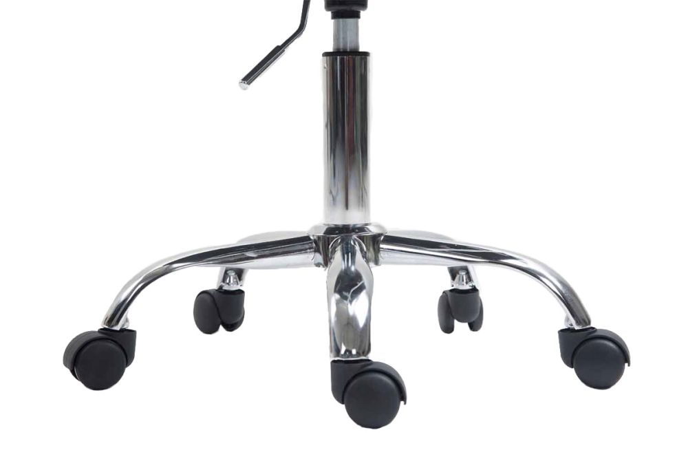 Die Sitzhöhe lässt sich stufenlos anpassen und passt sich so individuell an Ihre Bedürfnisse an. Dank seiner 360°-Drehfunktion und den fünf leichtlaufenden Rollen ermöglicht der Stuhl maximale Beweglichkeit. Das verchromte Metallgestell sorgt dabei für eine hohe Stabilität und verleiht dem Stuhl eine moderne Note.