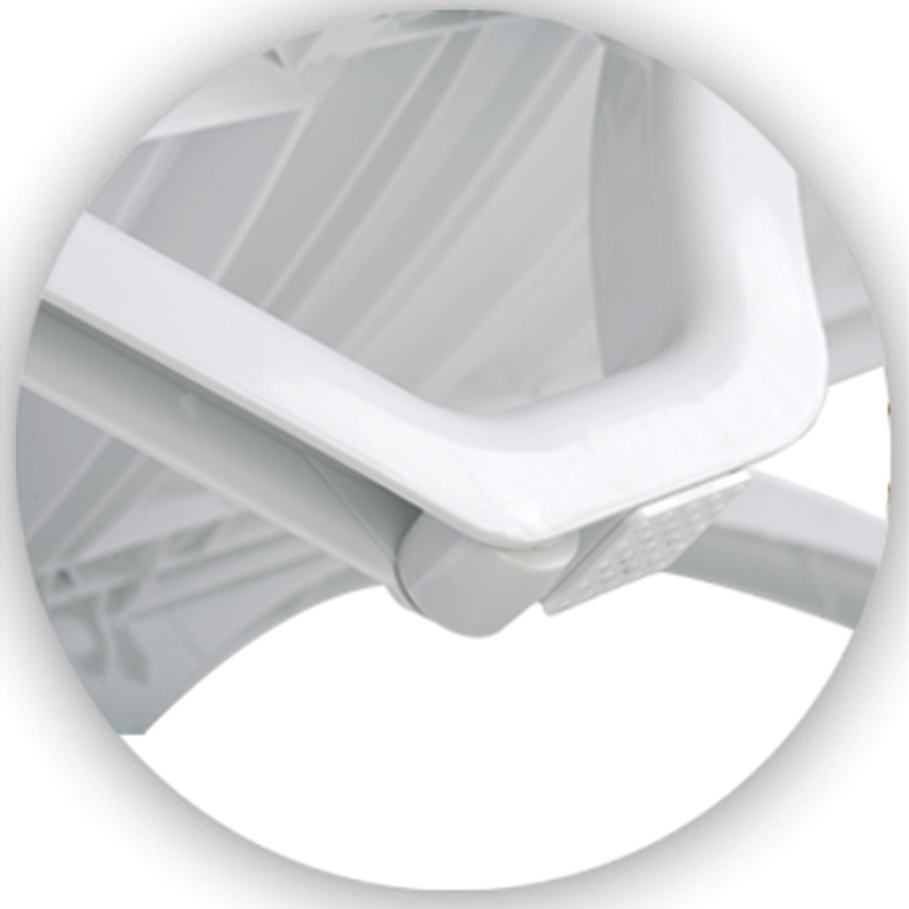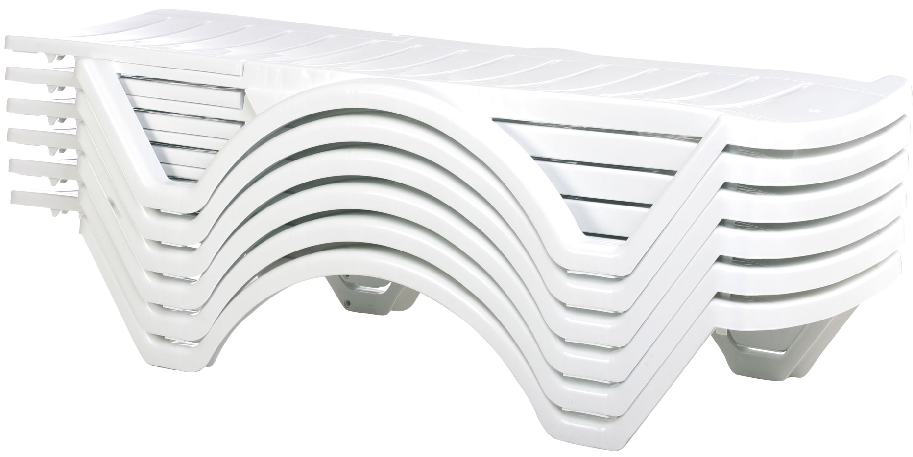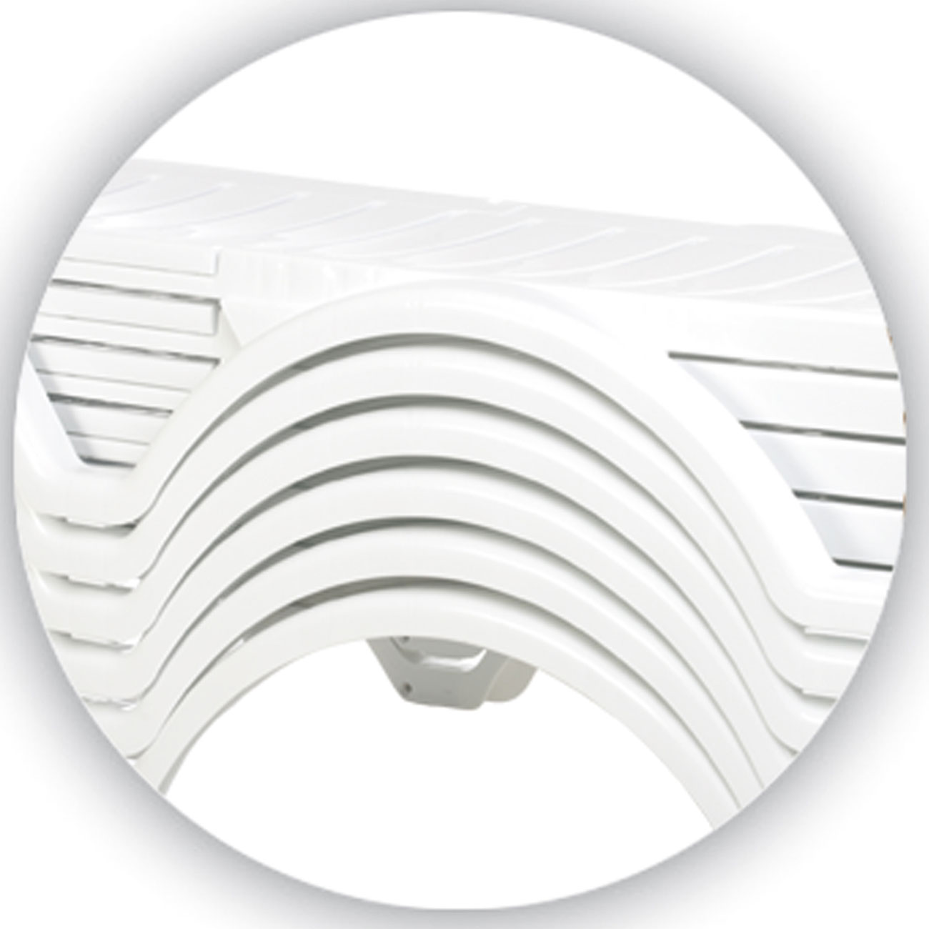 Die 5-fach verstellbare Rückenlehne sorgt für individuellen Liegekomfort – ob zum Sonnenbaden, Lesen oder Entspannen im Schatten. Breite Standfüße gewährleisten sicheren Stand ohne Wackeln, während zwei unauffällige Rollen das mühelose Umstellen erleichtern. Dank der stapelbaren Bauweise lassen sich die Liegen bei Nichtgebrauch platzsparend verstauen. Jede Liege ist bis zu 160 kg belastbar und besonders pflegeleicht.