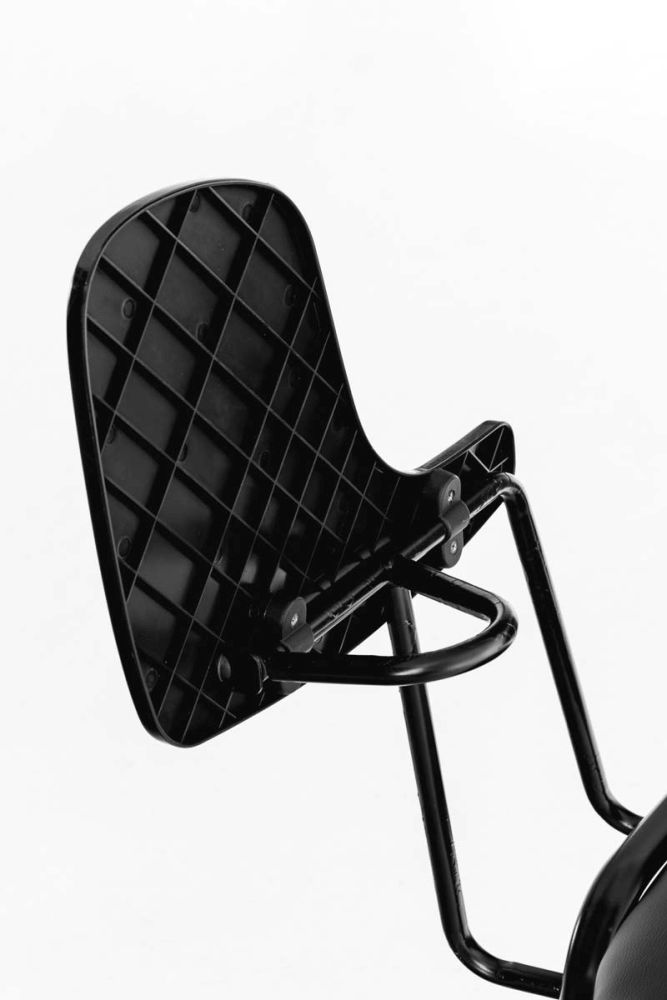 Die gepolsterte Sitzfläche und Rückenlehne mit Kunstlederbezug bieten auch bei längeren Sitzzeiten einen hohen Komfort. Das robuste 4-Fuß-Metallgestell sorgt für Stabilität, während das kompakte Design mit schwarzer Farbgebung in nahezu jedes Raumkonzept passt. Bitte beachten Sie: Aufgrund des integrierten Tisches ist der Stuhl nicht stapelbar.