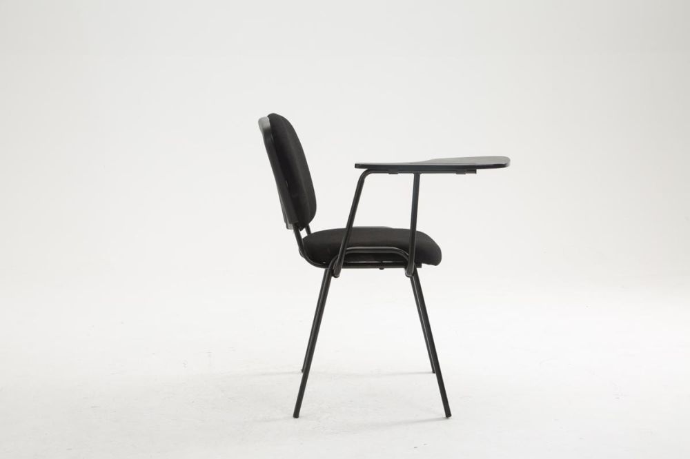 Der Stuhl Ken mit Stoffbezug kombiniert dezente Eleganz mit hoher Funktionalität und ist ideal für den Einsatz bei Schulungen, Konferenzen, Messen oder in Seminarräumen geeignet. Der integrierte Klapptisch verfügt über eine praktische Aussparung für Stifte und bietet eine platzsparende Arbeitsfläche – perfekt für Notizen, Tablets oder Unterlagen, ohne dass ein zusätzlicher Tisch erforderlich ist.