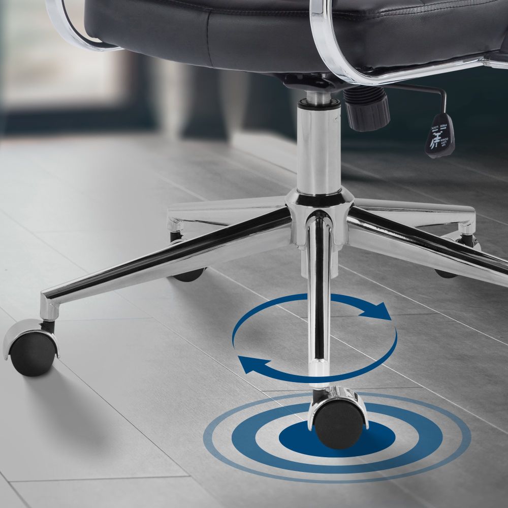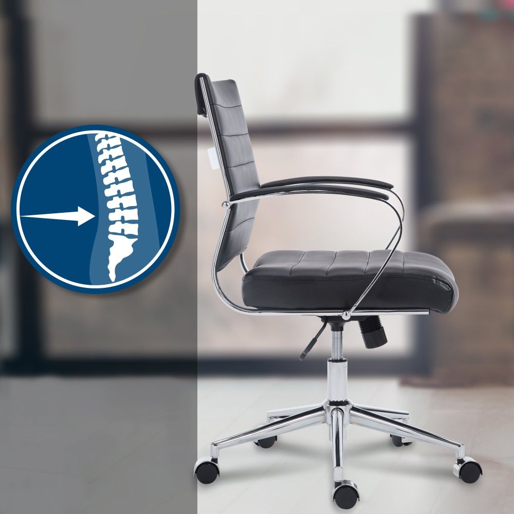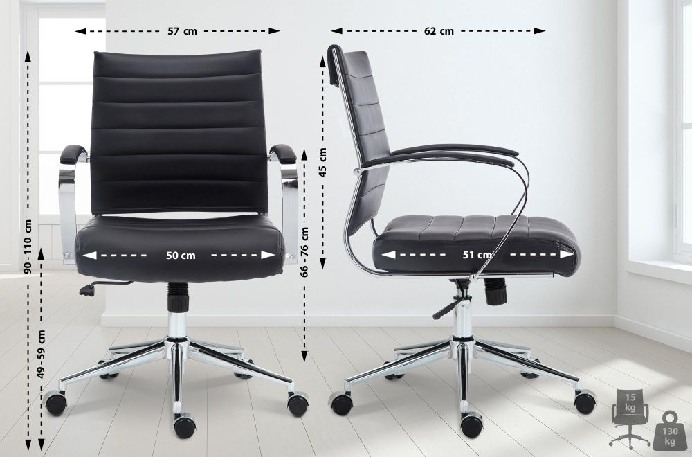 Der Bürostuhl Oakland überzeugt durch seine ergonomische Form, gepolsterte Rückenlehne und stilvolle Optik. Dank stufenlos verstellbarer Sitzhöhe, einer Wippfunktion und 360°-Drehbarkeit bietet dieser Stuhl eine flexible Anpassung an individuelle Bedürfnisse. Die breite Sitzfläche mit 8 cm starker Polsterung garantiert auch bei langen Arbeitstagen hohen Sitzkomfort. Das stabile Metallgestell in Chromoptik sorgt für Langlebigkeit und sicheren Stand – perfekt geeignet für Büro oder Homeoffice.