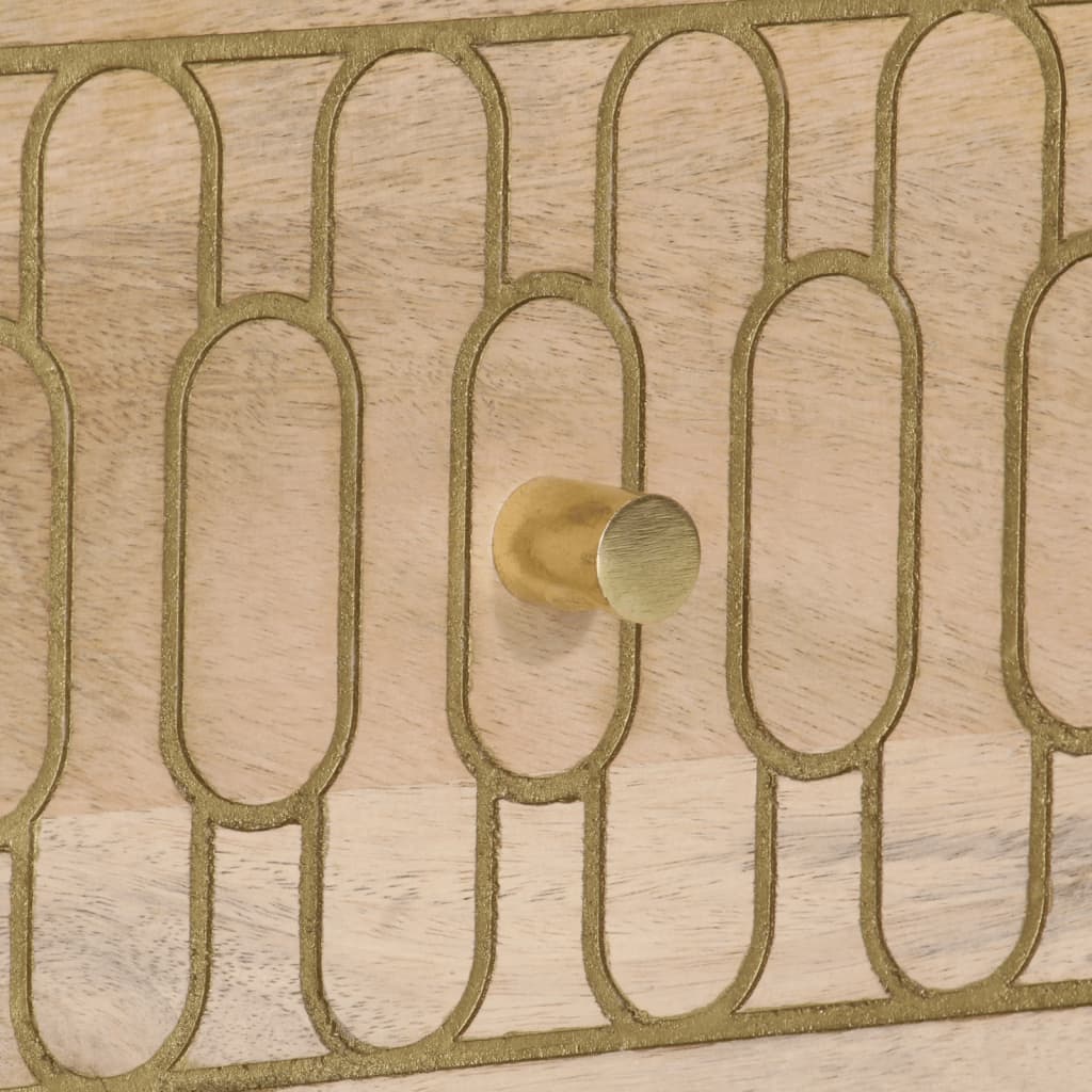 Die Holzbeine verleihen dem Schrank eine natürliche Optik und sorgen gleichzeitig für Stabilität. Zusätzlich sorgt das handgeschnitzte Muster für luxuriöse Details und einen eleganten, einzigartigen Look, der dem Interieur eine besondere Note verleiht.